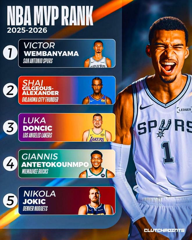 结果开季至今表现如此夸张的约基奇,在美媒《clutchpoints》最新一期MVP榜单评选中仅排第五,前四名可谓是个个神仙。